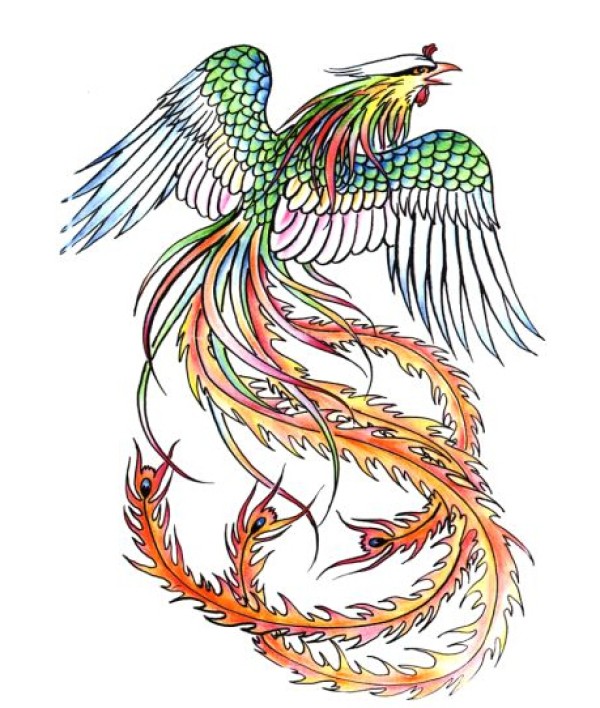 一款漂亮可爱好看的凤凰纹身手稿图案