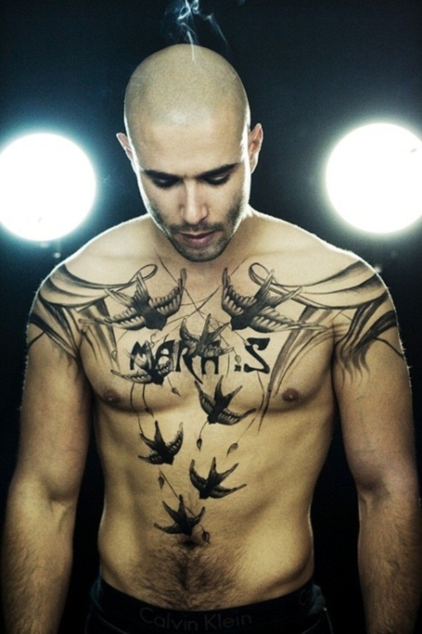 纹身图案胸部男 简洁大方的男生胸部纹身图案