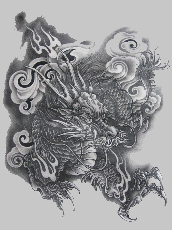 龙纹身手稿_一组老传统黑灰龙手稿纹身图案