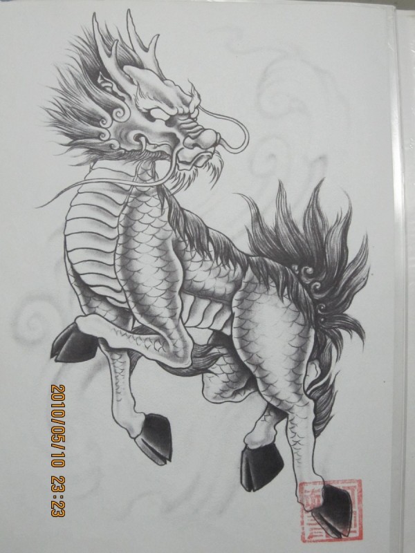 龙纹身手稿_一组老传统黑灰龙手稿纹身图案