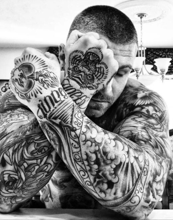欧美花臂纹身_22张霸气黑灰欧美大黑花臂纹身图案作品图片