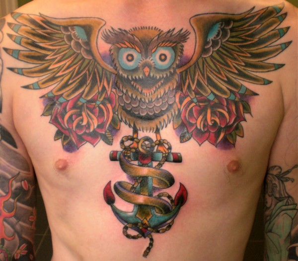 男士胸部霸气的猫头鹰纹身