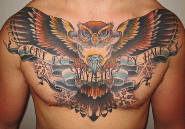 男士胸部霸气的猫头鹰纹身