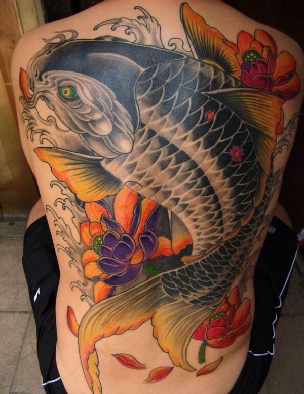 适合那些霸气的男士的满背鲤鱼纹身