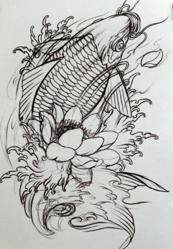 线条感的鲤鱼纹身手稿