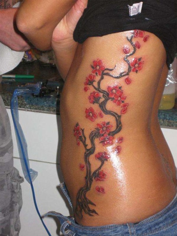 女性腰部莲花花纹刺青_腰部纹身图案大全_纹身图吧