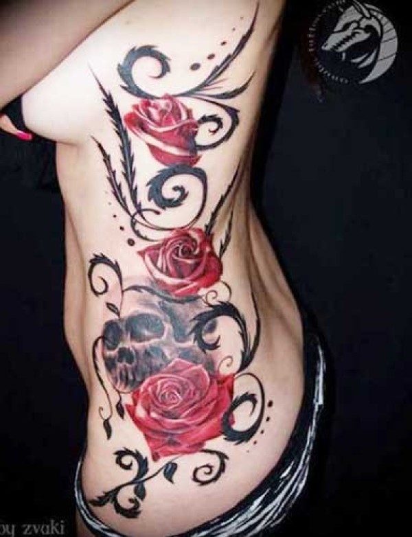 侧腰女骷髅刺青图案图片_骷髅纹身图案大全_纹身图吧