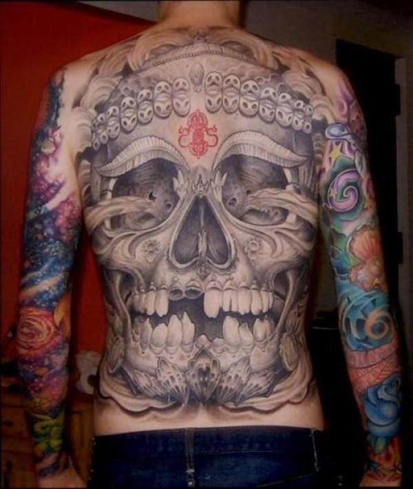 潮流的元素 满背骷髅纹身