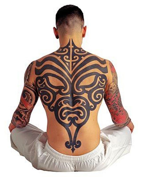 男性背部帅气的部落图腾纹身图案