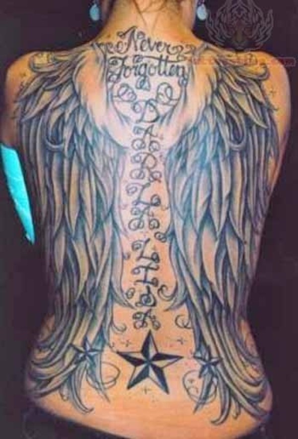 满背时尚的翅膀纹身