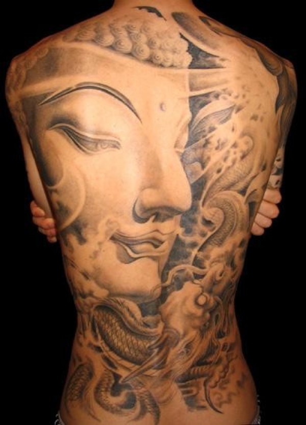 满背大气的佛纹身