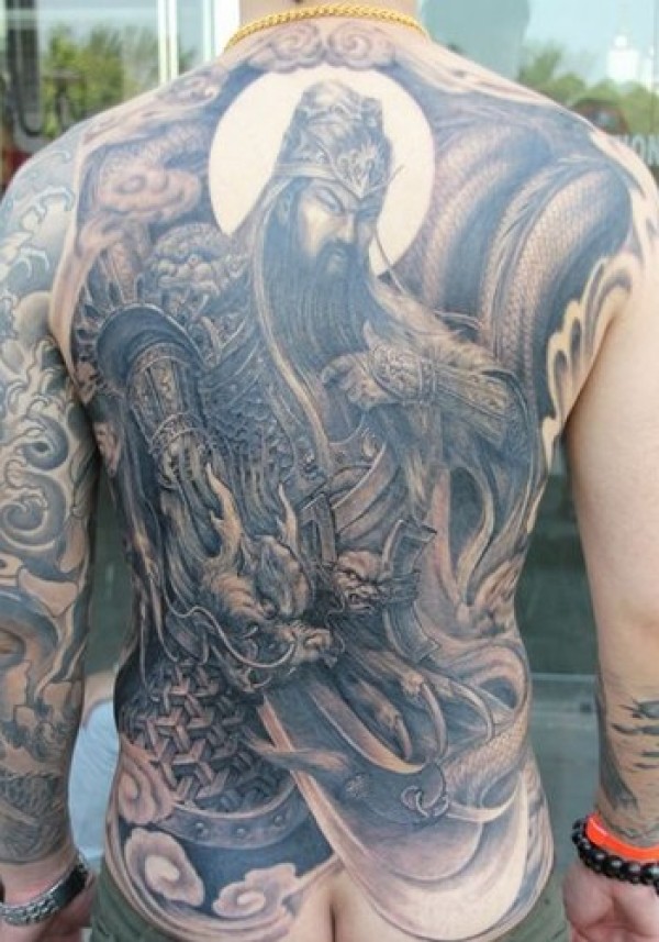 满背帅气的男人 关公纹身