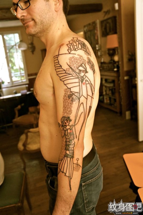 搞笑卡通纹身彩色线条鬼精灵电影里的纹身图案