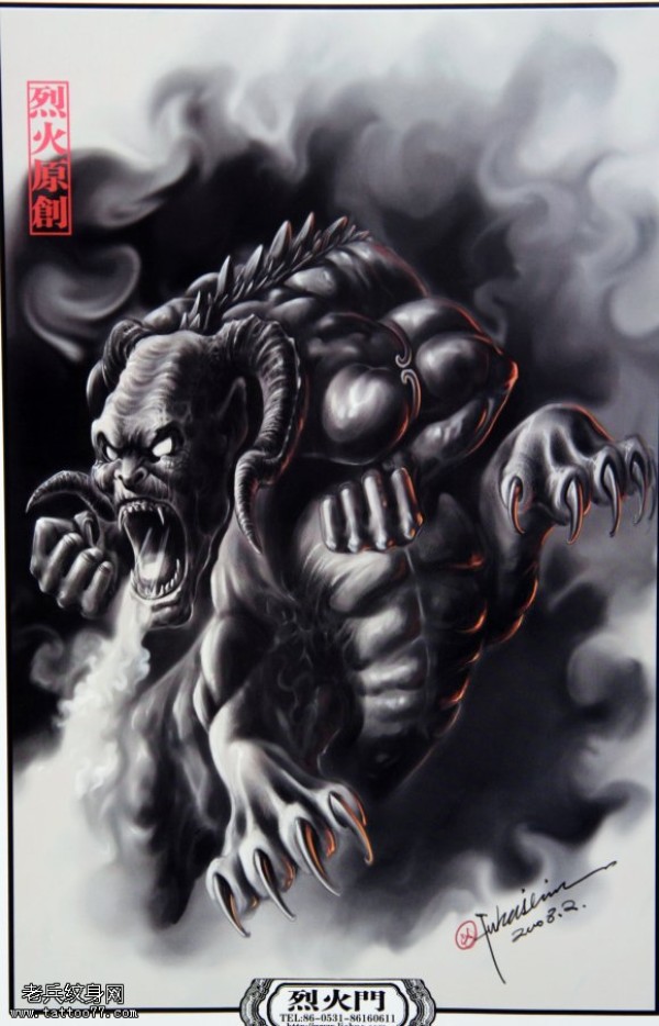 能面万媚纹身手稿_52张日式能剧面具纹身手稿图案素材欣赏