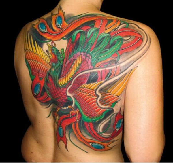 男生后背超高清彩色凤凰纹身