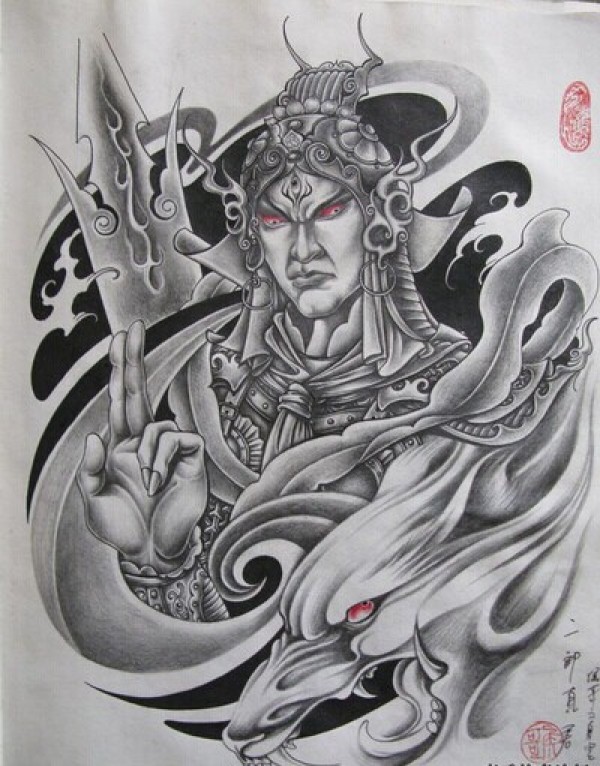 能面万媚纹身手稿_52张日式能剧面具纹身手稿图案素材欣赏