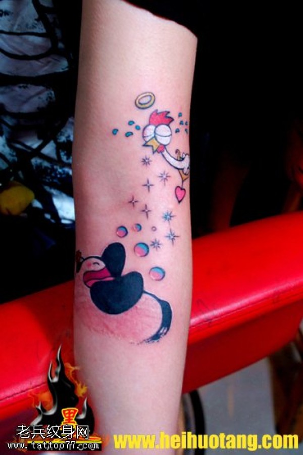 胳膊熊猫小鸡纹身图案