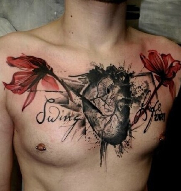 纹身图案胸部男 简洁大方的男生胸部纹身图案