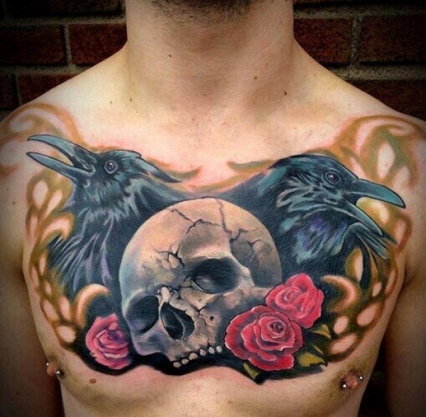 男士胸部超级帅气的骷髅纹身