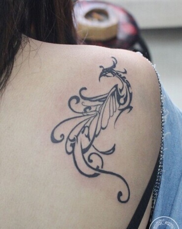 肩部简约时尚的凤凰图腾纹身