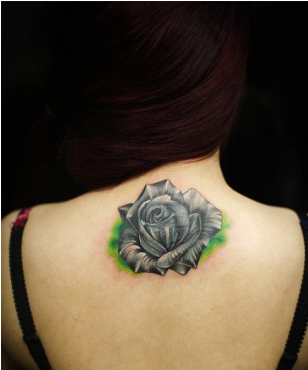 女生背部唯美好看的素描玫瑰花纹身图图片