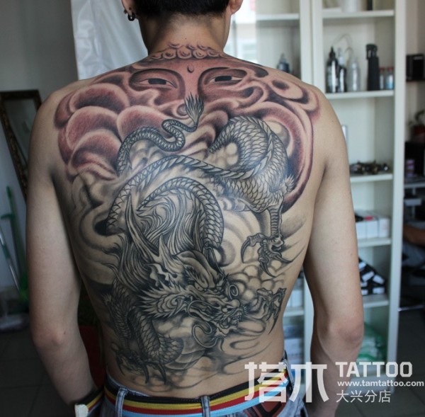 满背纹身佛像纹身龙纹身图案