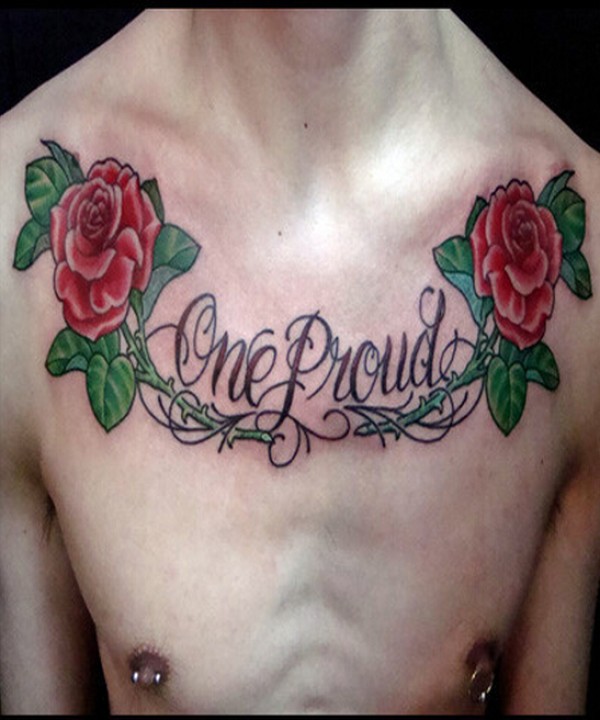 个性小清新男士胸部好看的玫瑰花纹身图片
