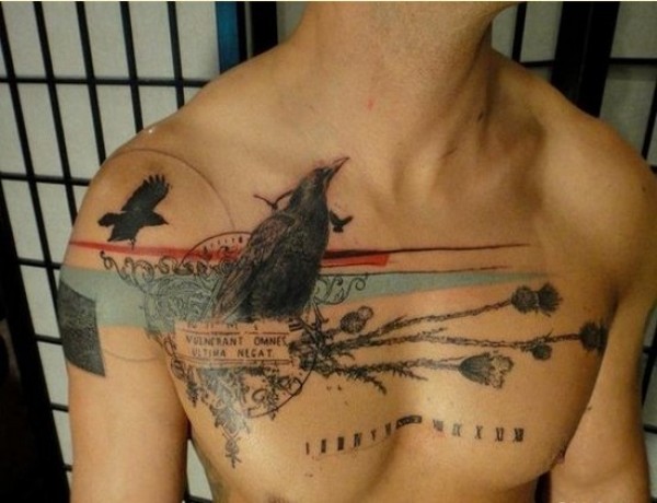 纹身图案胸部男 简洁大方的男生胸部纹身图案