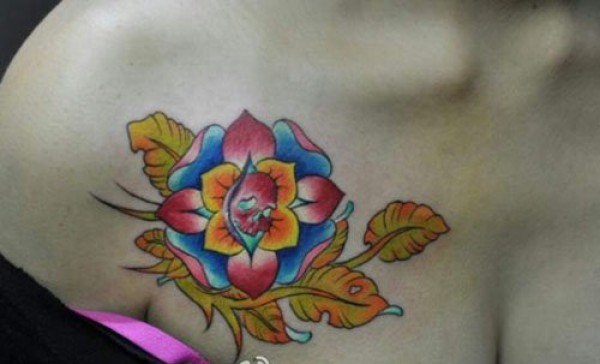 胸部漂亮的彩色花卉纹身