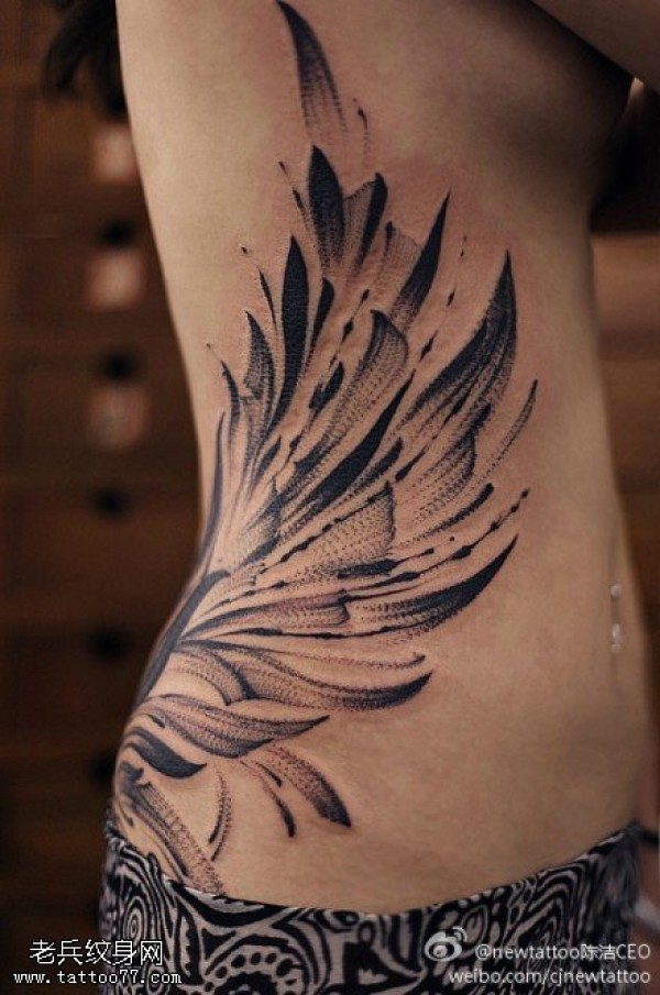 女性腰部莲花花纹刺青_腰部纹身图案大全_纹身图吧