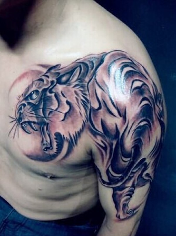 霸气半胛老虎纹身_动物纹身图案大全_纹身图吧