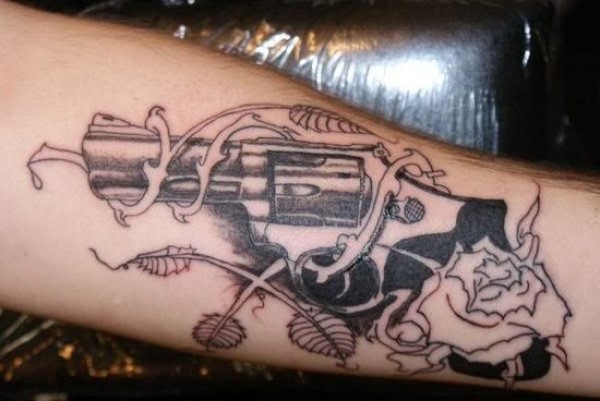 超级个性的手臂手枪纹身