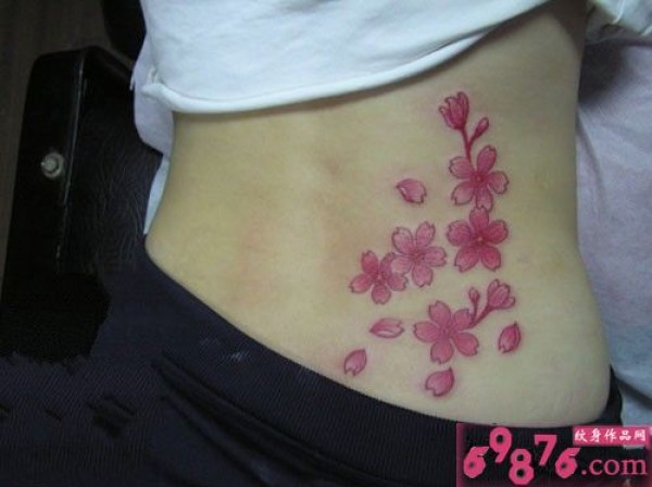 女生玲珑腰部的依兰花图案纹身女生腰部嫣红底_腰部纹身图案大全_纹身图吧