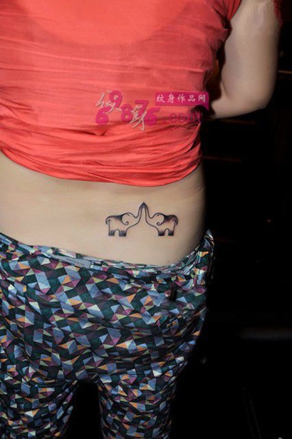 可爱的情侣小象腰部纹身图片