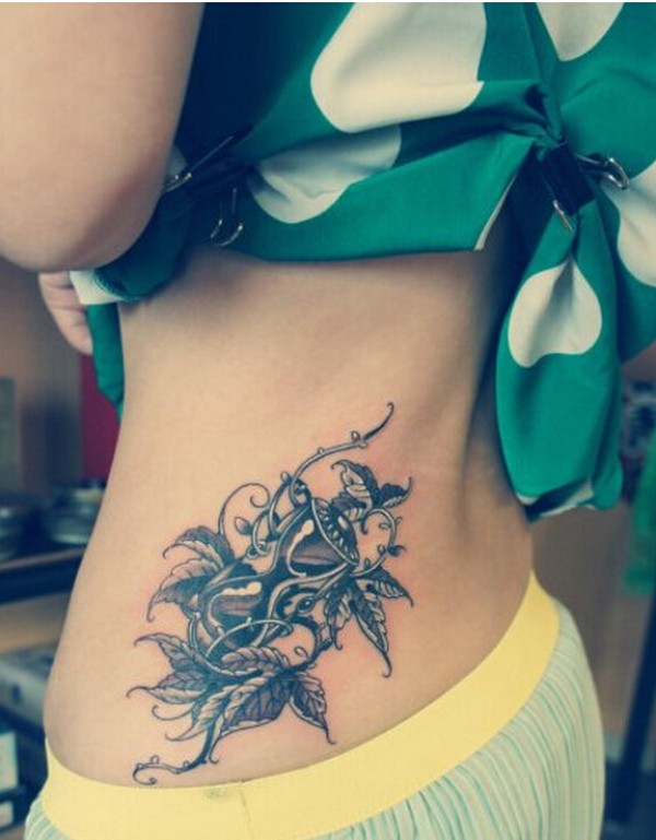 分享一款腰部时尚性感的蝶恋花纹身图案_腰部纹身图案大全_纹身图吧