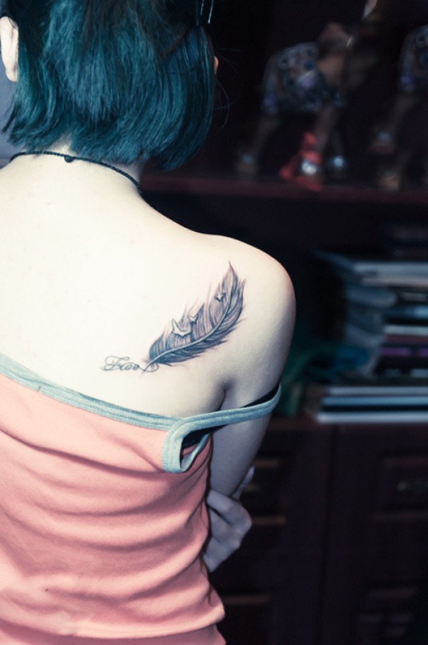 香肩清新羽毛时尚纹身图片