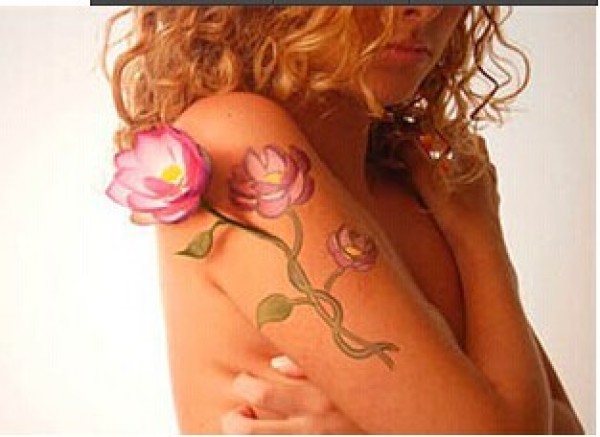 国外美女肩部优雅3D立体荷花纹身图案
