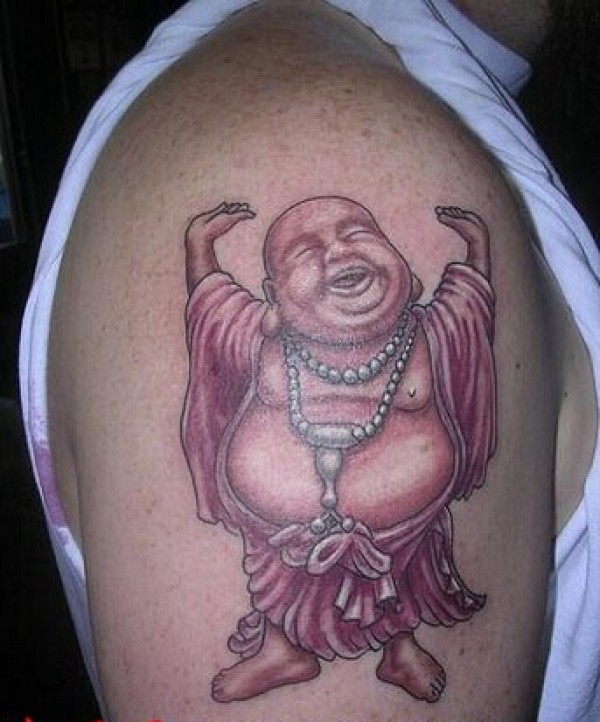 女生肩部漂亮好看的开心弥勒佛纹身图图片