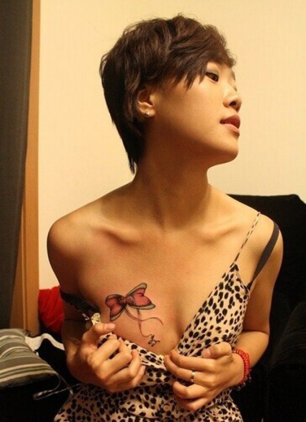 女生胸前漂亮的彩带纹身图案大全