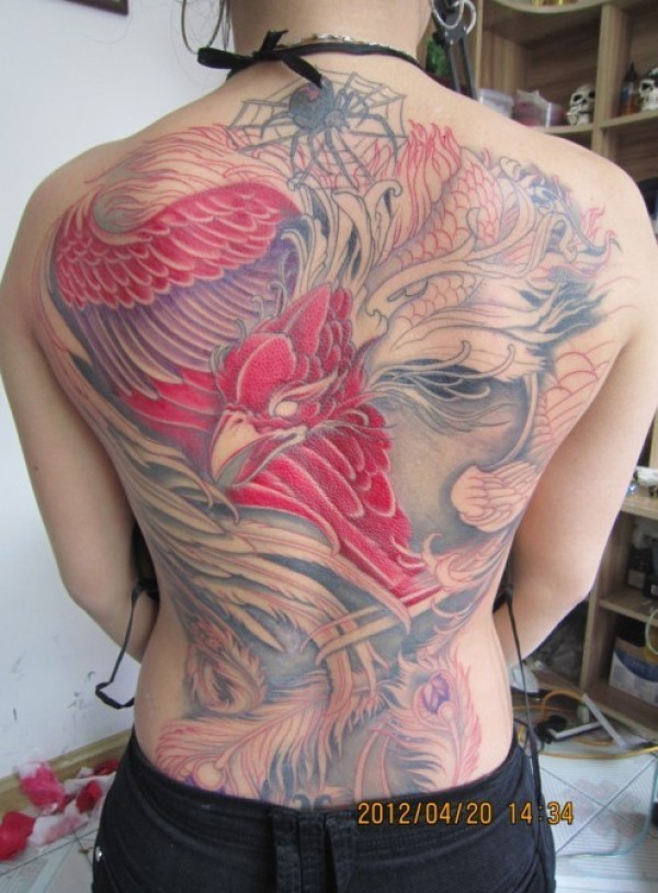 凤凰纹身 后背凤凰纹身人不多,但是很好看