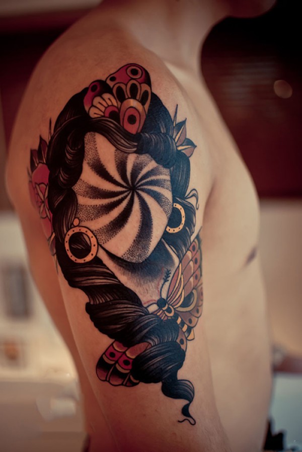 手臂一款彩色蘑菇纹身图案_臂部纹身图案大全_纹身图吧