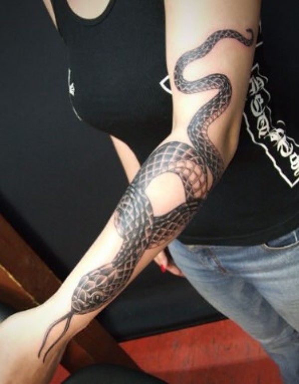 手臂莲花蛇纹身图案_臂部纹身图案大全_纹身图吧