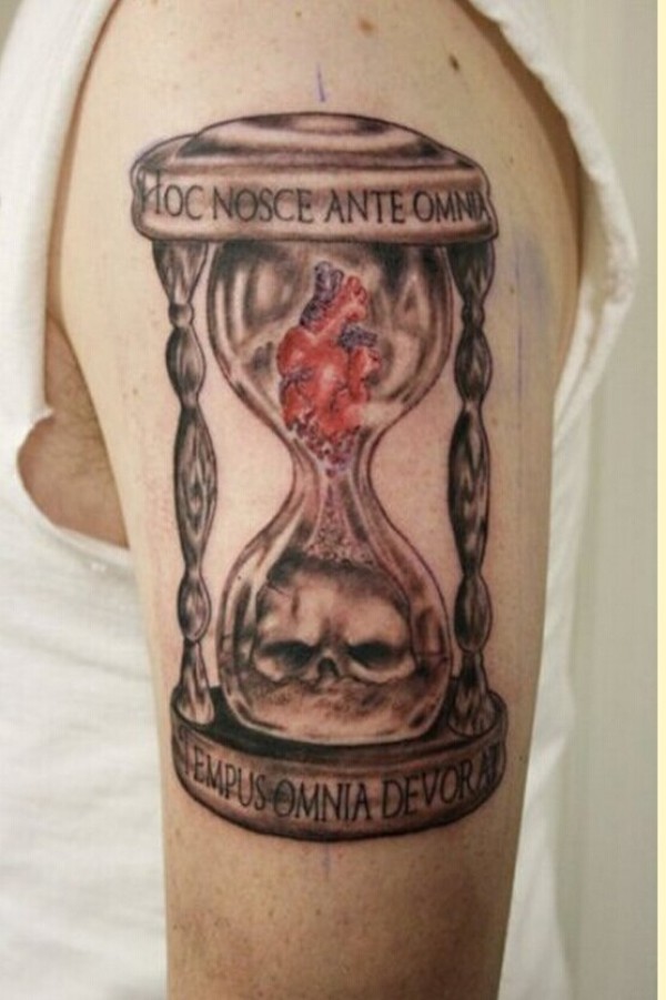 时尚手臂个性骷髅头沙漏纹身图案欣赏图片