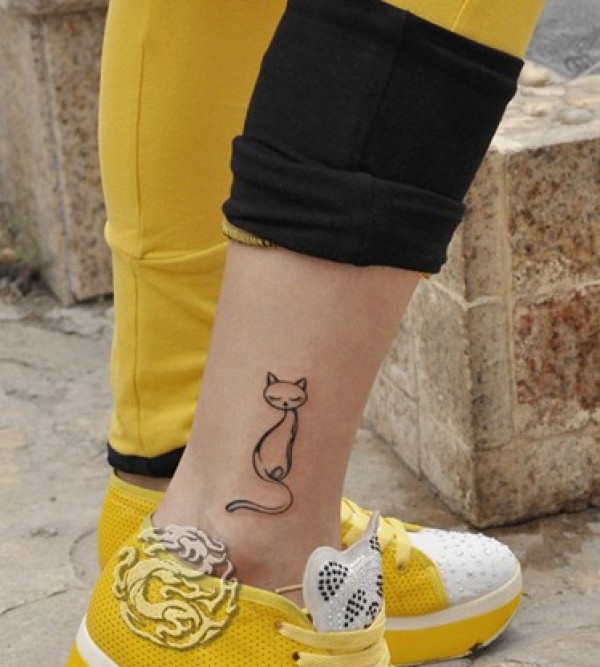 小腿优雅小猫纹身图片