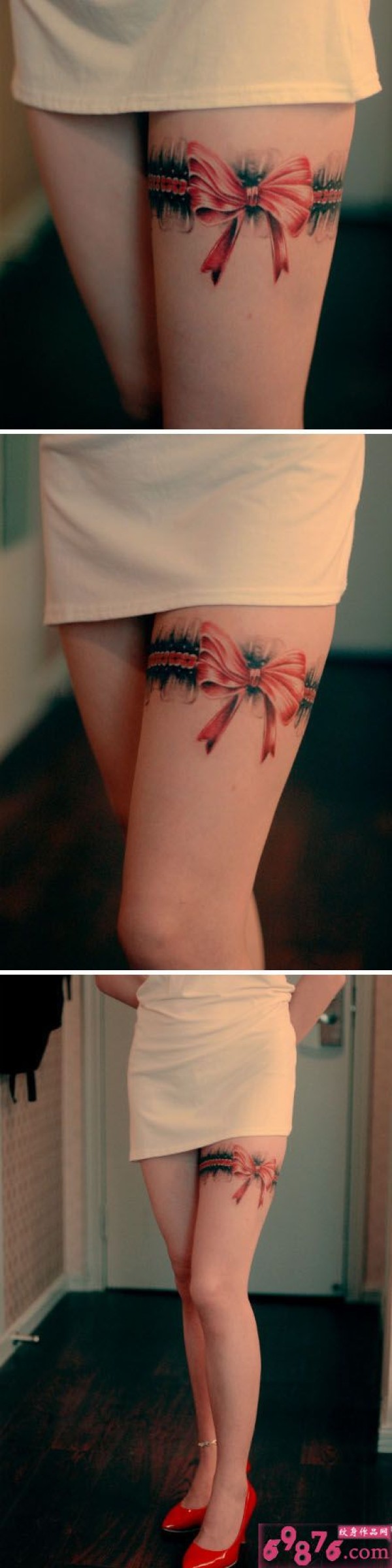 性感蕾丝蝴蝶结大腿纹身图片