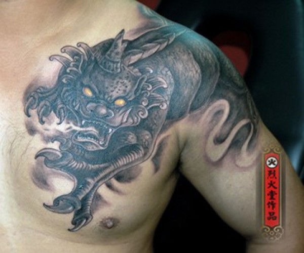 龙纹身手稿_一组老传统黑灰龙手稿纹身图案
