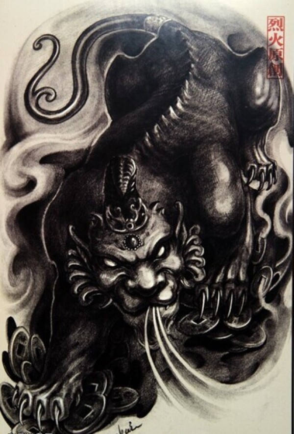 大气的招财神兽 貔貅纹身手稿