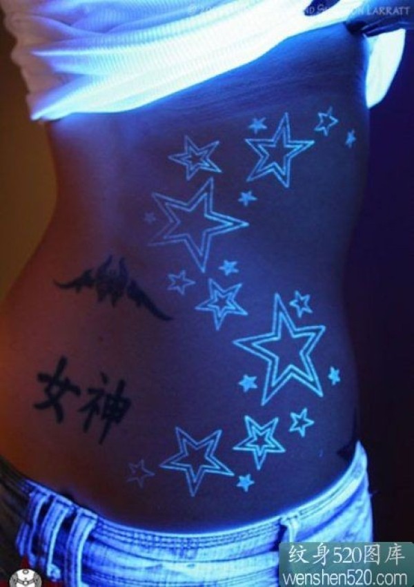 分享一款腰部时尚性感的蝶恋花纹身图案_腰部纹身图案大全_纹身图吧