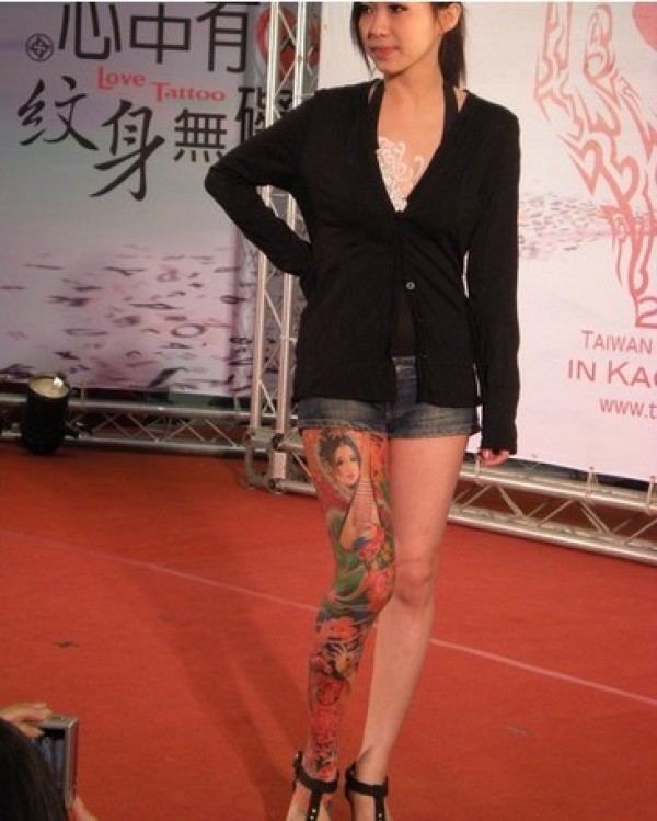 日式风格的传统花腿纹身作品欣赏