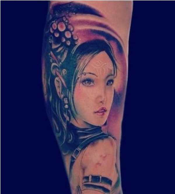 传统花腿纹身--18张传统风格的大花腿纹身图案作品
